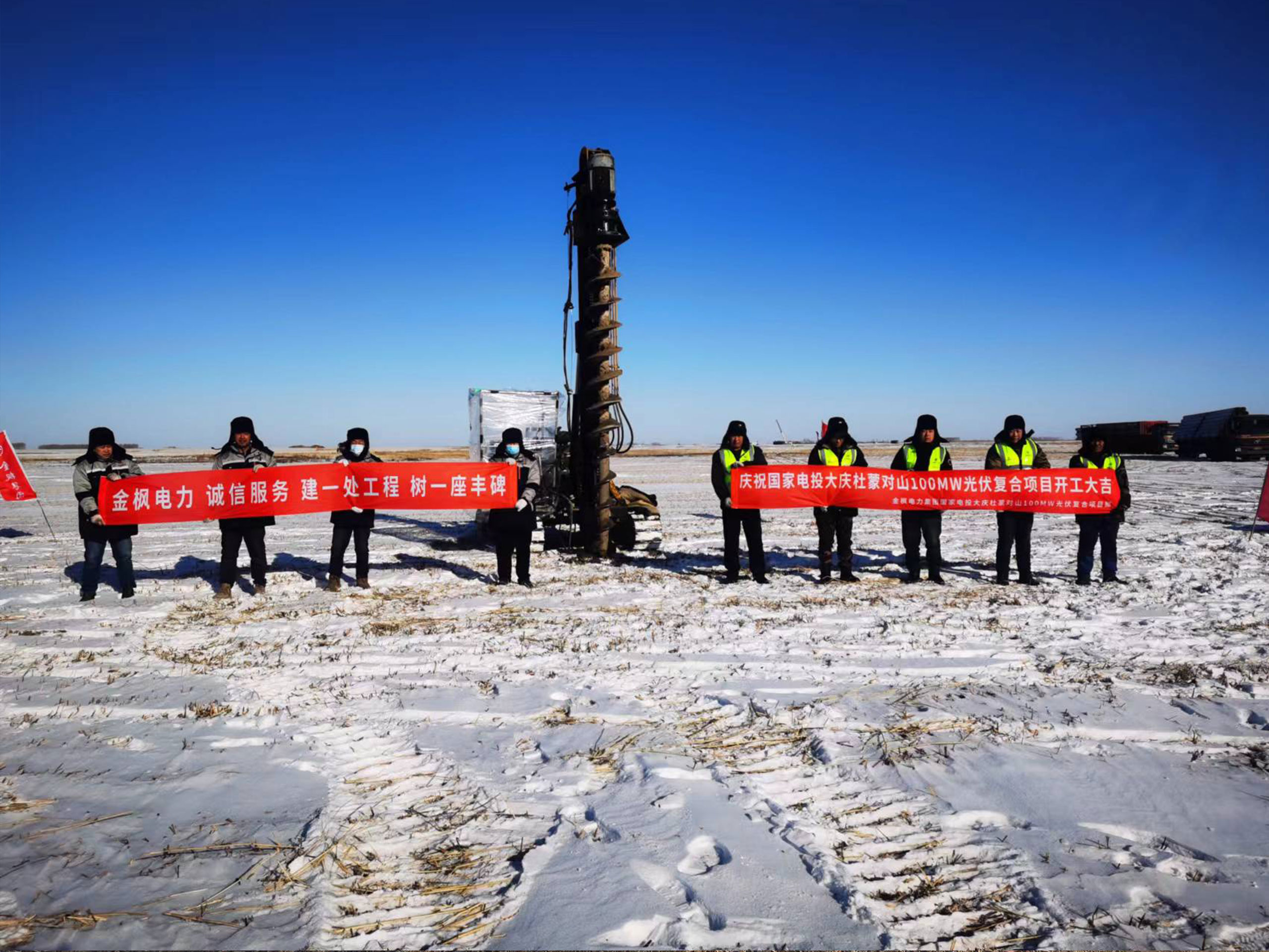 热烈庆祝国家电投大庆杜蒙对山100MW光伏复合项目一标段于2023年2月14日正式开工,该项目由国核电力规划设计研究院有限公司投资建设,建设地点位于黑龙江省大庆市杜尔伯特蒙古自治县对山奶牛场内,我司负责该项目的所有施工工作,主要包括:新建一座220kV升压站,场区直流侧装机容量约为126.69696MWp,220kV升压站全部建筑、地基处理、土地清表、安装工程、火灾报警、升压站所需的所有调试试验、并网配合及进站道路、所有设备材料供货、14MWP光伏场区直埋电缆敷设、槽盒电缆敷设、土建及安装施工、设备及材料、保管、检验、安装、调试、试验等。